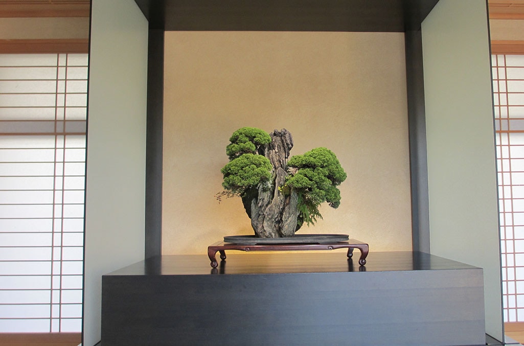 First of all, a suitable rock needs to be found; it should have many small cracks and holes in it providing the tree with space to grow roots. Sometimes rocks can be found in nature, but increasingly the rocks are handmade and sold in Bonsai stores.