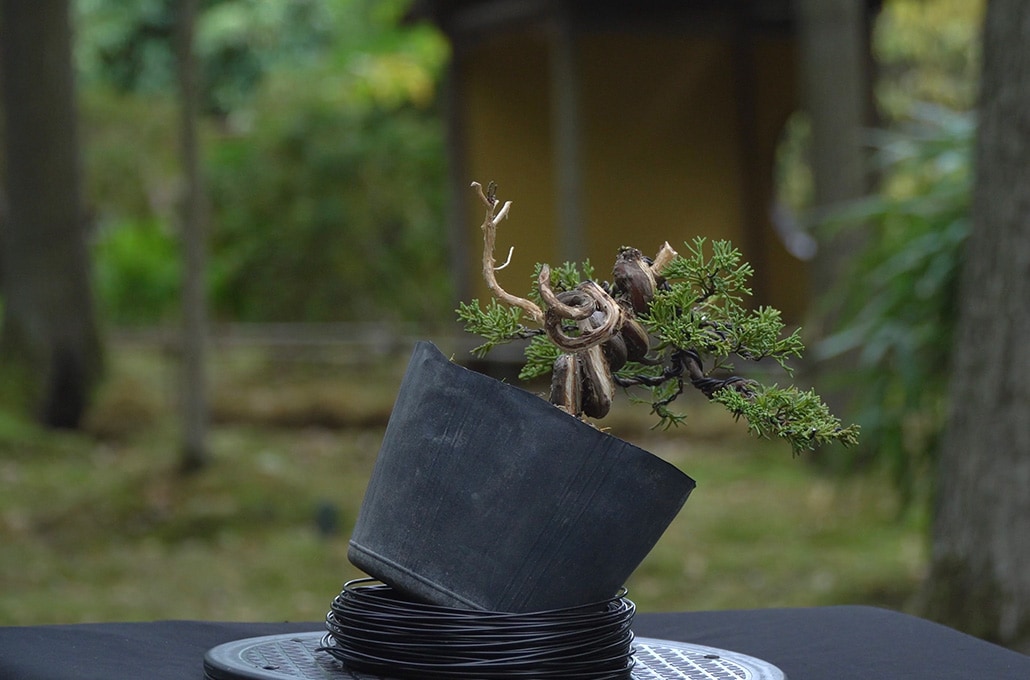 The Juniper, a Kishu variety, was originally grown from a cutting. Before we started work on it, the tree had been wired and then left to grow thicker over time.