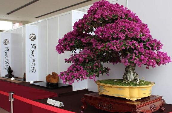 Abundant flowers on this massive Bougainvillea Bonsai, by Lorna Toledo. Read more in the Bonsai with flowers article.