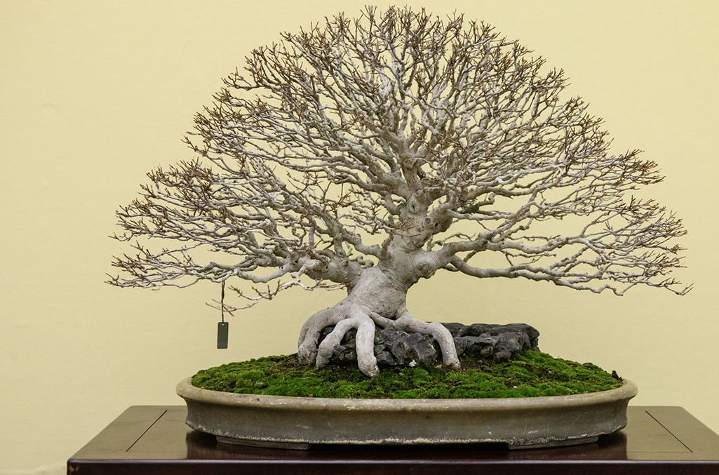Bonsai attached to a rock, photo by Peter Tea taken at the Meifu-ten in Japan.