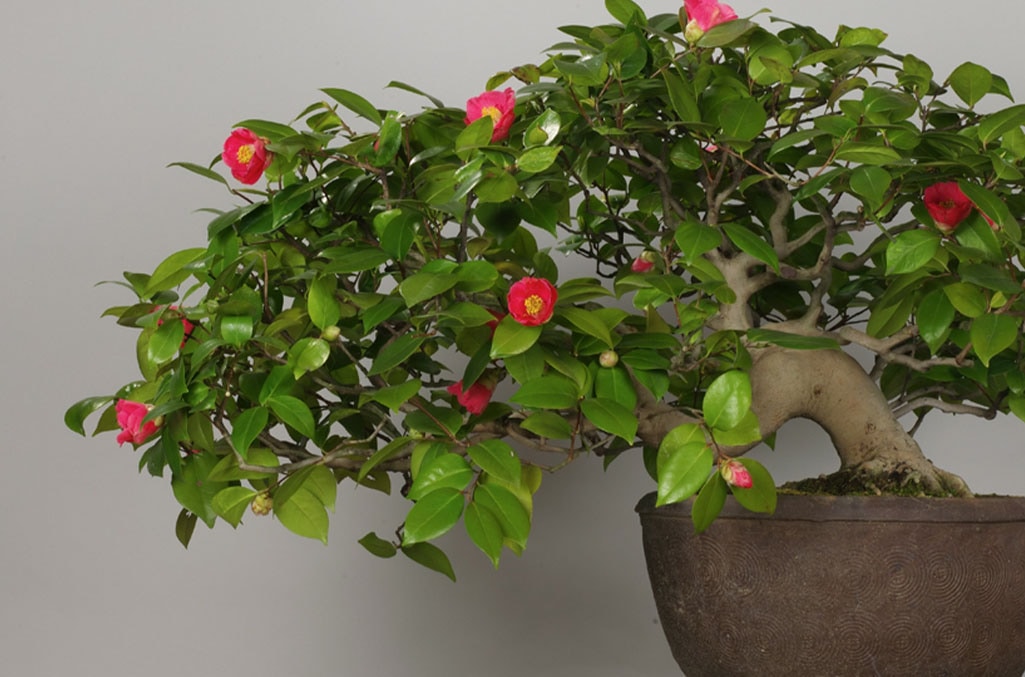 The camellia is originally native to East-Asia and is not fully frost hardy. Camellia sinensis is the real tea plant. The most popular species for bonsai are Camellia japonica, Camellia reticulata and Camellia sasanqua. C. sasanqua is the smallest and most compact species, but it is more sensitive to frost than other species. The Camellia tree is a good choice for an attractive bonsai tree with lovely flowers that appear at the end of the twigs in late winter or early spring. It is not very frost hardy, especially the flower buds, and needs protection in winter. If you need help identifying your tree, take a look at our Bonsai tree identification guide.