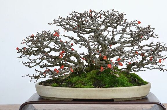 With varieties ranging from the traditional Flowering Quince to the diminutive 'Chojubai' the Chaenomeles bonsai offers a diverse range of options.