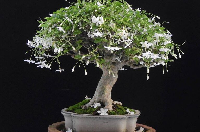 It has light green lanceolate leaves which are arranged in an opposite pattern. The flowers are white, pendulous, and fragrant. If they are pollinated by insects, long green seed pods develop which look like pairs of beans. The water jasmine takes constant pruning well and ramifies willingly. In tropical countries it is therefore often planted to form hedges. The bark and the roots of the water jasmine are used for medicinal purposes in some countries. The Wrightia religiosa, like its botanical name suggests, is a holy plant for the buddhists. It is planted in many temples and house gardens. If you need help identifying your tree, take a look at our Bonsai tree identification guide.